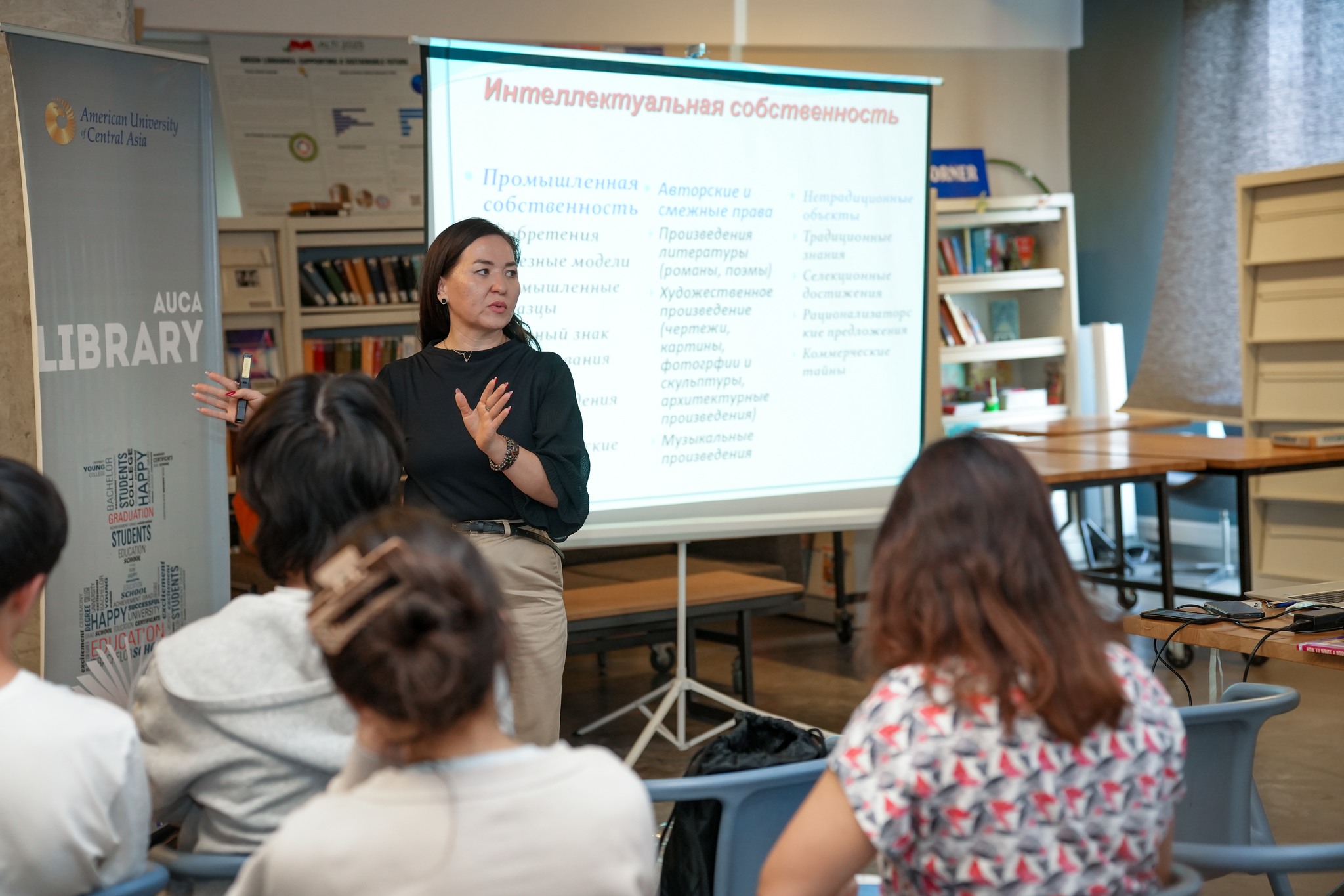 15 апреля 2026 года в библиотеке АУЦА состоялся тренинг, посвященный вопросам авторского права и интеллектуальной собственности. Спикером выступила представитель Министерства науки, высшего образования и инноваций Кыргызской Республики Динара Баякунова. Мероприятие было приурочено к Международному дню авторского права и направлено на ознакомление студентов с базовыми принципами интеллектуальной собственности, а также с ее ролью в академической и профессиональной деятельности.